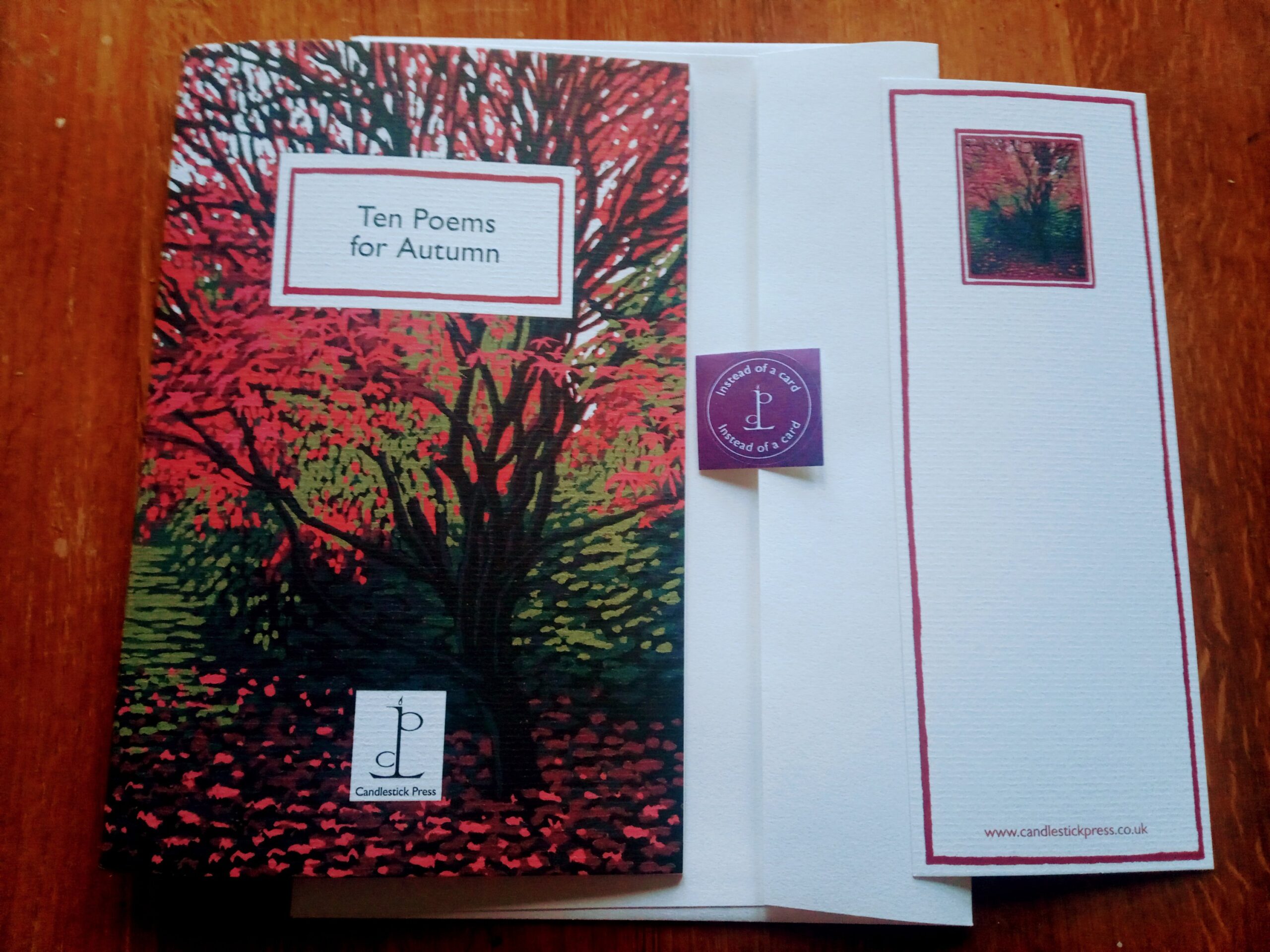 If you have a look at the Candlestick Press website you will see there are pamphlets on almost every subject you can think of and I’m sure you would something suitable for a friend or a relative. For example you will find poetry on the subject of home, happiness, love, bees, knitting, tea, sheds and cricket. You will find poetry from Wales, Scotland, Ireland and Russia. You will find poems for brothers, husbands and wives, grandparents and aunts. And you will find poetry for all the seasons. You will see I have included some photos above from the Autumn pamphlet.